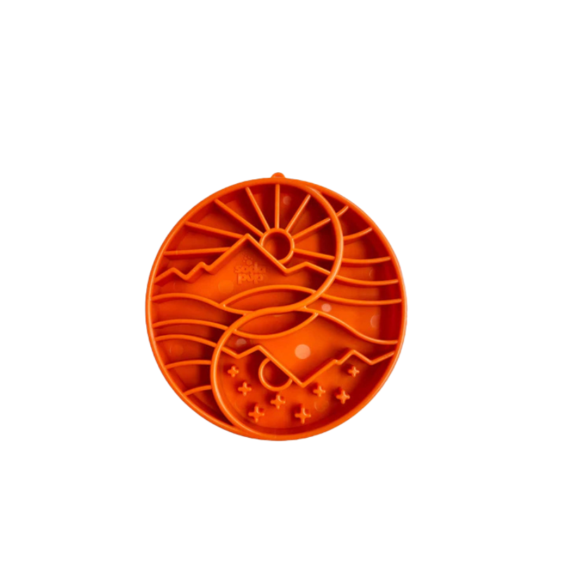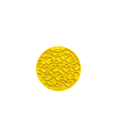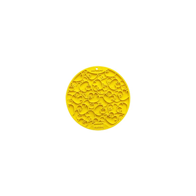 The repetitive licking motion on a mat stimulates the release of endorphins, the hormones of calm and well-being.